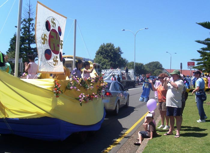 ![]() 法轮功学员参加纽卡素游行,受到欢迎。 |