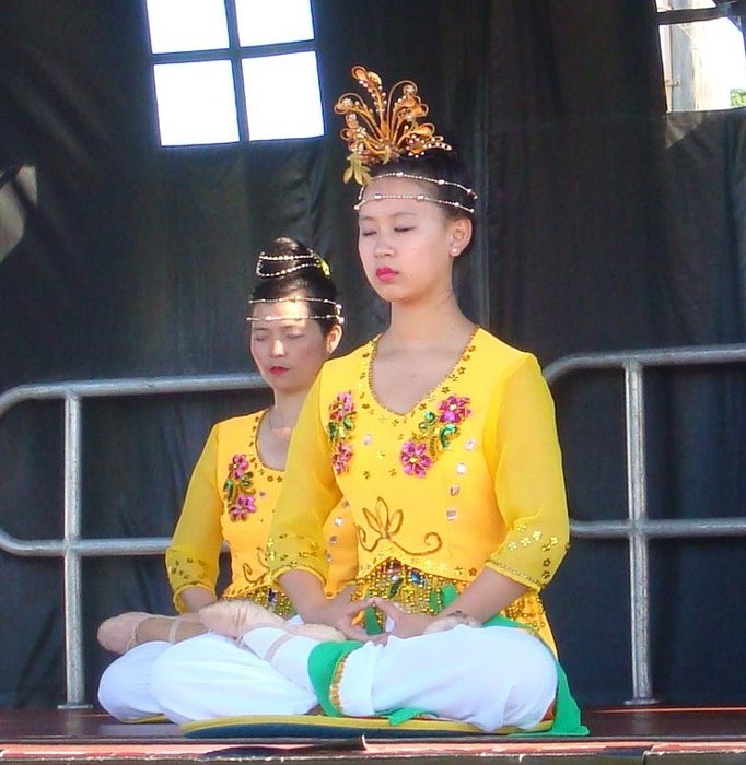 ![]() 法轮功学员应邀在舞台上演示功法 |