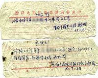 ●99年7月20日迫害开始,张瑞军等人对去北京上访的法轮功学员,进行非法拦截、关押,对在家的法轮功学员绑架,殴打,抄家,强迫每天去派出所报到,受害者近千人。随后强迫法轮功学员放弃信仰,限制法轮功学员去北京,非法向法轮功学员索要所谓保证金,每人500至5000元,没有合法收据,有的也只是没人签名的白条(见下图)。这笔巨额款项至今没有归还法轮功学员。