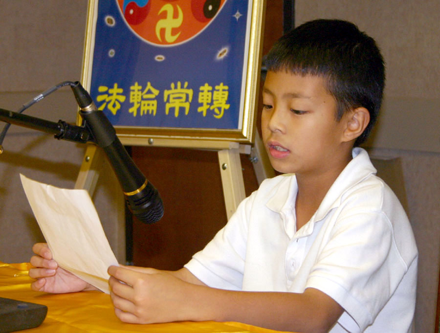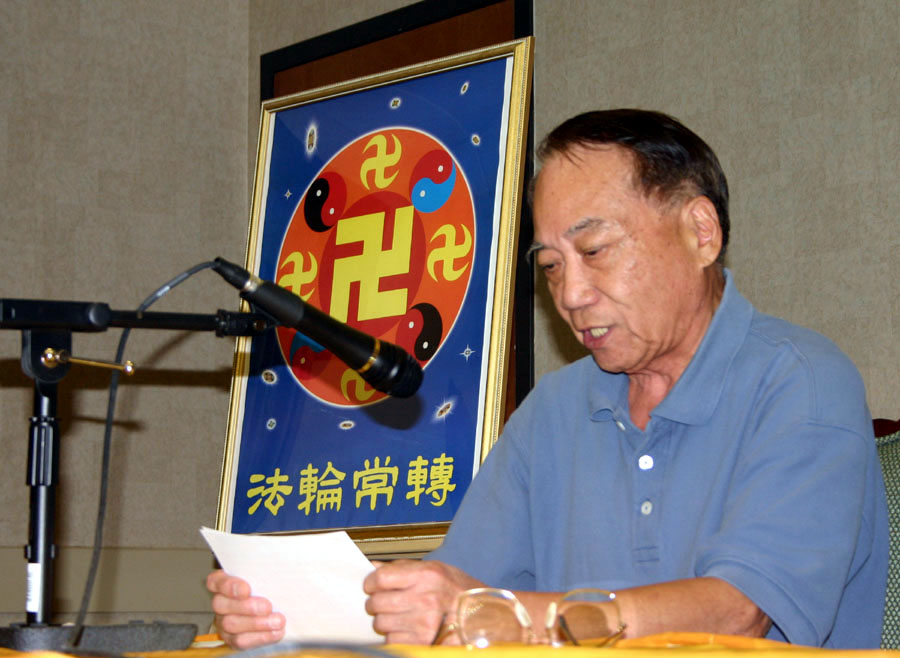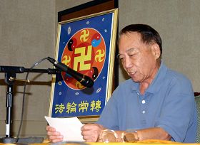 来自台湾的法轮功学员林先生是一位年长者,修炼法轮功已近十二年了。他神采奕奕,丝毫看不出他的实际年龄。他因为修炼法轮功之后身体有了很大的改善,就介绍给他的亲人,他的十三位亲人陆续走進法轮大法。他的主要发言内容是:“迈出家门,如何去讲真相,证实大法。” “我与家人、还有其他大法弟子在明湖城的图书馆、中国城区成功的举办了‘真、善、忍’画展,吸引了美国人、华人来观看。”