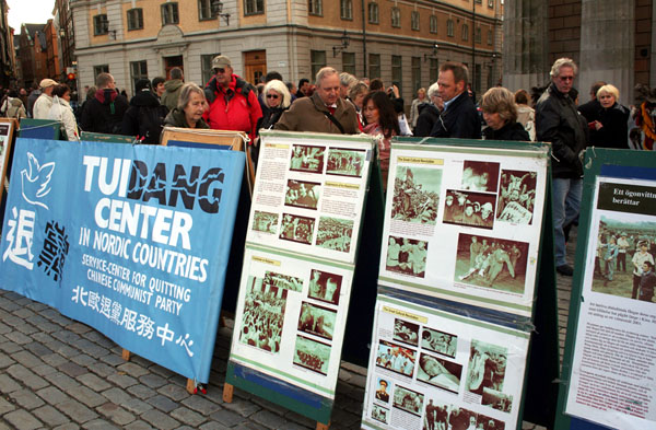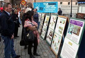 ![]() 人们在真相展板前了解中共对善良民众犯下的滔天罪行 |