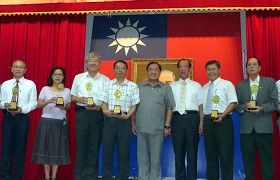 ![]() 获奖团体与市长、副市长合照,左四是台湾法轮大法学会领奖代表萧松山、右四是市长张通荣、右三是副市长柯水源。 |
