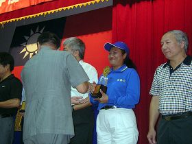 ![]() 市长张通荣颁发「最佳团体精神奖」奖杯给天国乐团代表 |