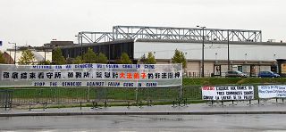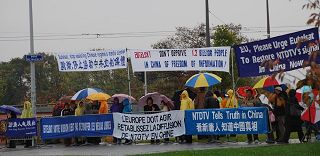 部份法轮功学员参加了此次活动,支持敢于传播真相的新!唐!人:电视台,并向欧洲各国政府揭露中共残酷迫害法轮功的事实。在欧盟议会大厦的正门口,就清晰可见法轮功学员呼吁制止中共迫害的横幅。过往的车辆和很多参观欧盟的旅游团体都能清楚的看到。