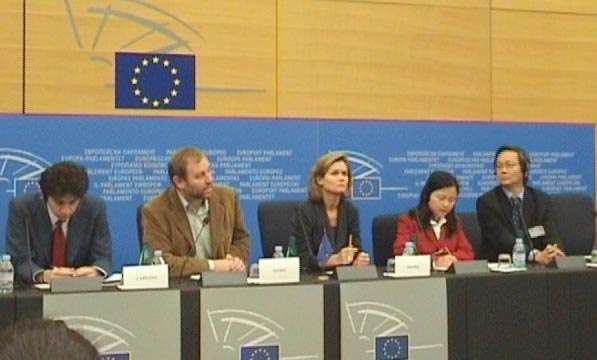 德国绿党欧洲议员赫伽·图鲁蓓女士(Helga Trupel)在会上发言时表示,恢复新!唐!人:电视台的信号对中国人来说是非常重要,因为新!唐!人:使中国民众能够了解真实信息,比如最近被媒体曝光的毒奶丑闻。