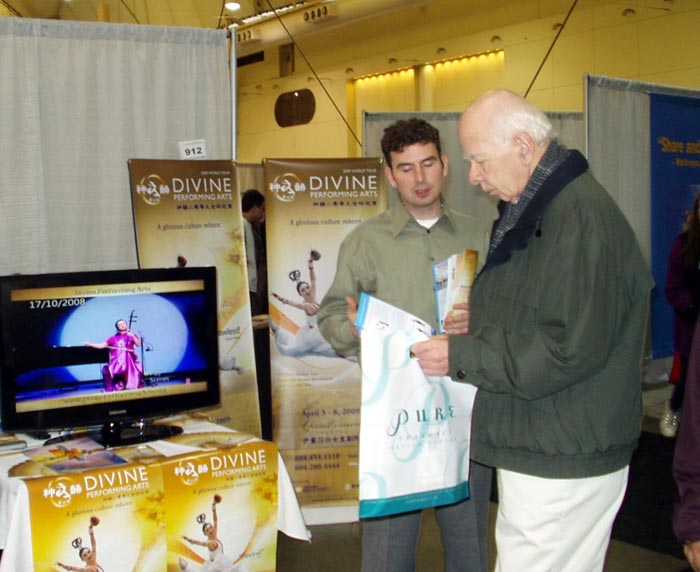 一些今年看过神韵演出的观众,经过法轮功展位时,都会主动过来和学员打招呼,并且表示明年还会看,有的当场就买了明年四月神韵艺术团在温哥华演出的票。