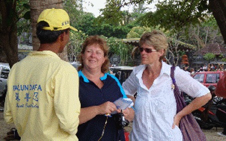 为了将大法的美好带给更多善良的有缘人,巴厘岛全体法轮功学员在“ANNUAAL INTERNATIONAL EVENT KUTA KARNIVAL”的活动地点古搭海滩(KUTA)举行了大规模的功法展示、腰鼓队表演和向游客的讲真相活动。祥和舒展的炼功队伍、欢快喜庆的腰鼓队表演加上美丽善良的“仙女”,吸引了众多国内外游客驻足观看。在了解了法轮大法的真相后,人们纷纷感谢法轮功学员给他们带来了祥和与美好!更有有缘的民众当场表示要修炼法轮大法。