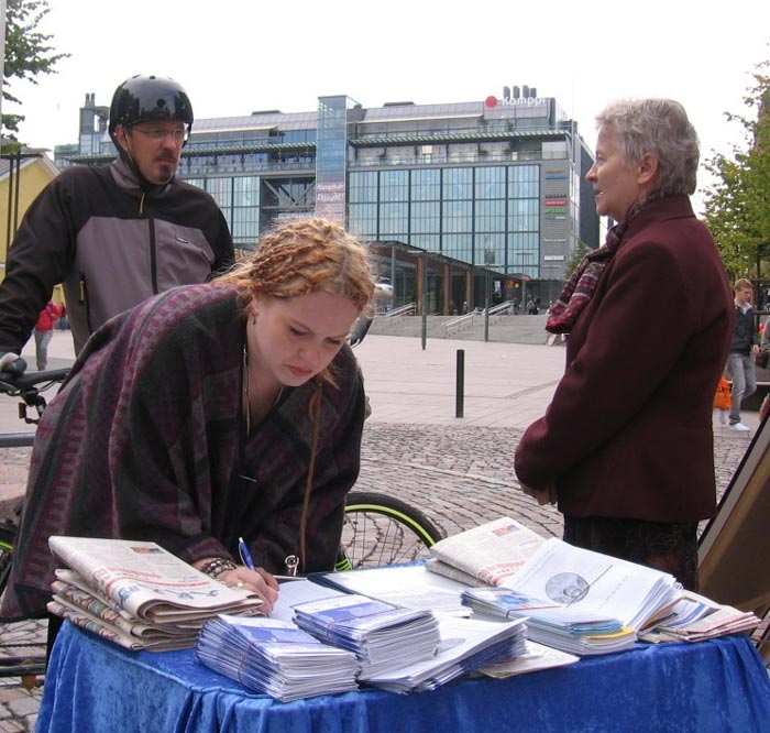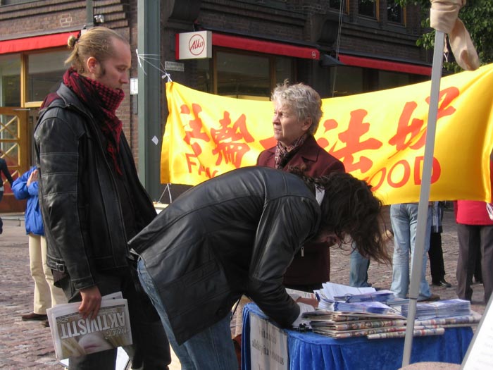 芬兰法轮功学员自二零零零年以来,通过各种方式和渠道,不间断的向芬兰民众讲述真相,所以对这里的人们而言,法轮功已不陌生。善良的芬兰人也在用各自的方式,向法轮功学员伸出援手。