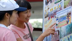 ![]() 民众观看展板、了解真相 |