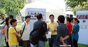 一位越南的留学生刚刚开始修炼法轮功,他表示:这个功法很好,教人做好人,中共的镇压是不对的。还有一位青年学生表示,他看过很多法轮功学员写的文章,使原本对社会失望不满的他重燃生活的信心,找到了人生的方向。他在报上看到了有关今天演说角落活动的消息便前来助阵。