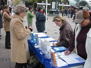 ![]() 法轮功学员向人们讲述发生在中国的迫害真相 |