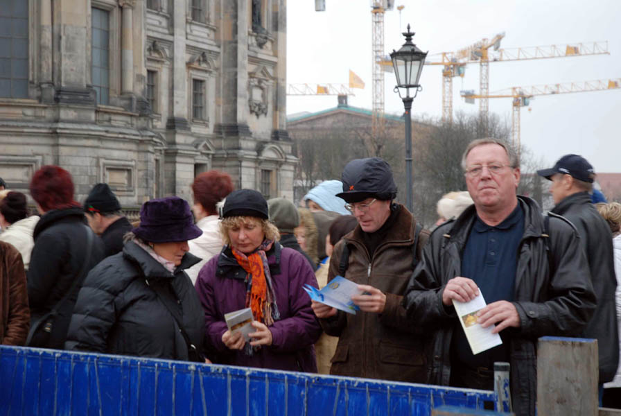 来自丹麦的汉斯Hans在退休前是位部级官员。他在丹麦时就了解到中共对法轮功的迫害。在布兰登堡前,老人对记者说:“他们刚才演奏的曲子我不熟悉,好象没听到过。但是那首贝多芬的欢乐颂,我是知道的。我觉的他们(法轮功学员)在象征柏林墙倒塌的布兰登堡前演奏极具意义。”