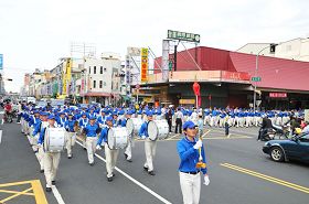 游行队伍回到中部办公室前,三百位天国乐团成员于道路两侧一齐演奏“法轮大法好”、“法轮圣王”,场面庄严而壮观,为整个活动画下圆满的句点。