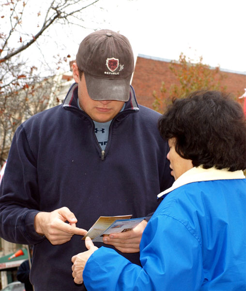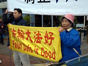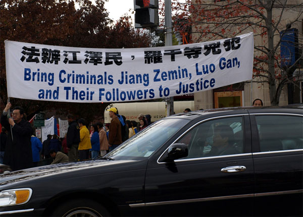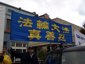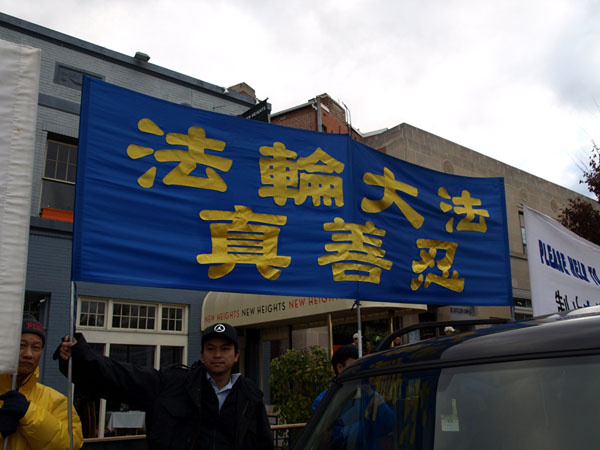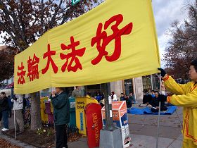 华府法轮功学员葛女士说,“这三天当中,胡锦涛的车队几次从法轮功学员面前经过,看到我们打出的横幅,同时也让众多的华人和西方人有机会亲眼见到法轮功学员,给他们一个了解真相的机会。”