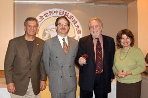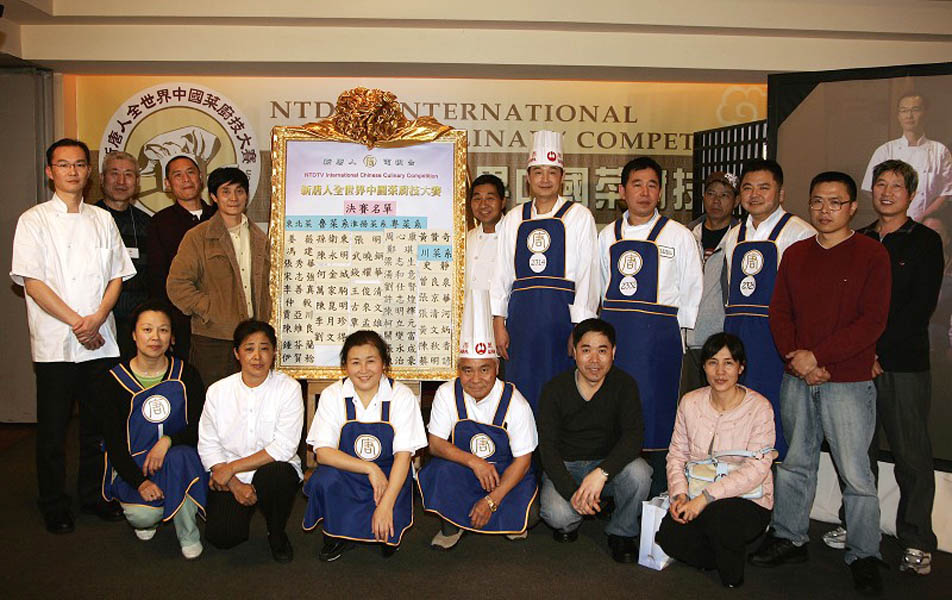 ![]() 新!唐!人:中国菜厨技大赛北美赛区入围决赛的部份选手在金榜前合影 |