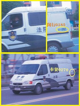 ![]() 11月3日中午13点,非法押送刘进的法院警车从奉贤看守所出来,共二辆警车,依维柯警车车身上写“闵行0185”,另有一辆“奉0270”跟在依维柯后面。 |
