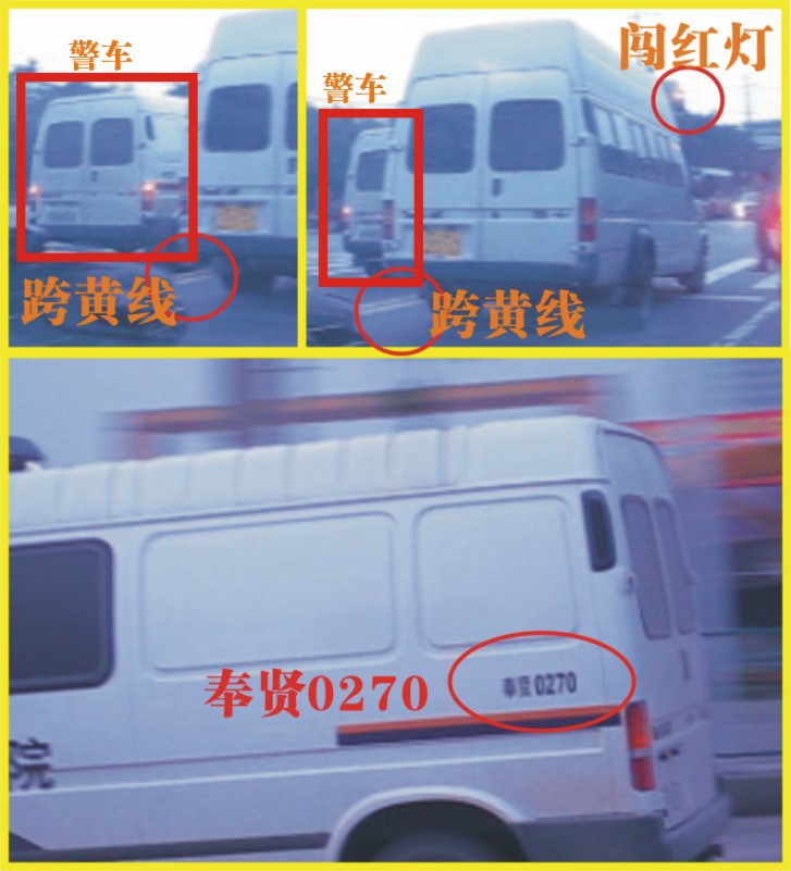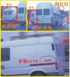往返使用了不同的警车,车子不断违章越黄线,闯红灯。