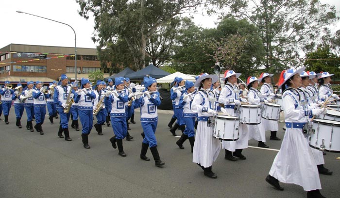 法轮功学员坐在美丽的花车上向道路两边的观众挥手致意;功法演示的队伍,动作舒缓柔和,给人们带来祥和与温暖;美丽的唐装舞蹈表演,色彩缤纷靓丽,获得了观众们热烈的掌声。悠扬悦耳的音乐随风飘送,给街道两旁的民众带来祥和殊胜的感受。观众们赞不绝口:“真是太美了,太美了!”他们不断的鼓掌,向学员们挥手致意。