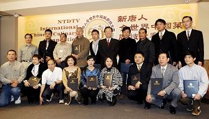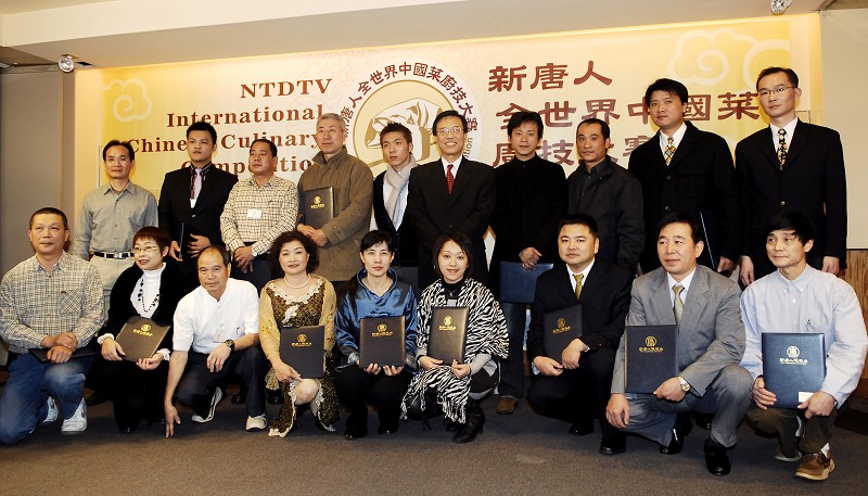 ![]() 中华民国交通部观光局驻纽约办事处主任张政源(右五)为首届“全世界中国菜厨技大赛”优胜奖选手颁奖后合影。 |