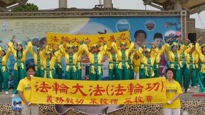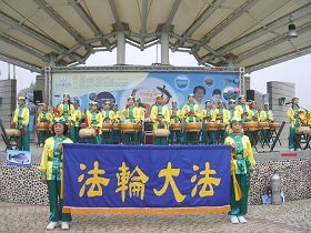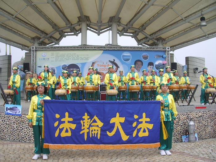 【明慧网二零零八年十一月二十四日】台湾高雄县永安乡第九届石斑鱼文化节二零零八年十一月二十二日和二十三日盛大登场,县长杨秋兴、永安乡长黄顺益、议长许福森等人到场共襄盛举。二十三日中午,从大会舞台上传来隆隆的鼓声,振奋人心。这是天威唐鼓队的精彩表演。“天威唐鼓队”的成员,由社会各阶层的人士组成,有校长、老师、教授、公务员、退伍军人等,经修炼法轮功,身心受益,希望能将法轮大法“真、善、忍”的纯净、美好,通过鼓声献给大家。自成立以来,天威唐鼓队经常受邀至各地参加游行、表演,足迹遍及香港、金门、澎湖及台湾各地。