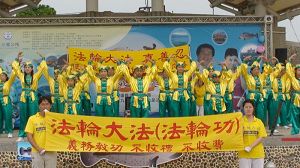 天威唐鼓队演出的曲目是:“新天、新地,新纪元”,“法鼓出击”。一开始就吸引许多来宾及乡亲观赏,现场有位小朋友兴高采烈的跟随鼓声学着打鼓的模样真是可爱。每当表演空档,观众席都响起热烈的掌声。接着,天威唐鼓队的成员为来宾演示法轮功五套功法,主持人特别介绍法轮功的内涵及在大陆中共如何打压这些善良的修炼人,并告知每天早晨在永安国小炼功点免费教功,欢迎有兴趣的乡亲就近来参加学法炼功,身心受益。