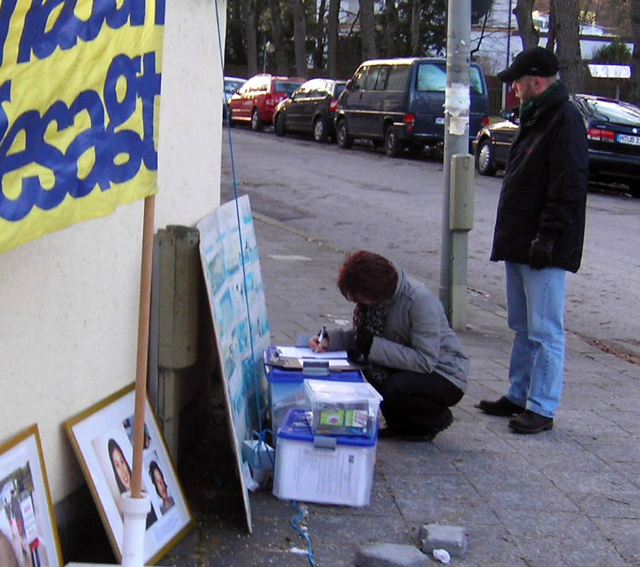 慕尼黑法轮功学员中领馆前揭露恶党暴行(图)