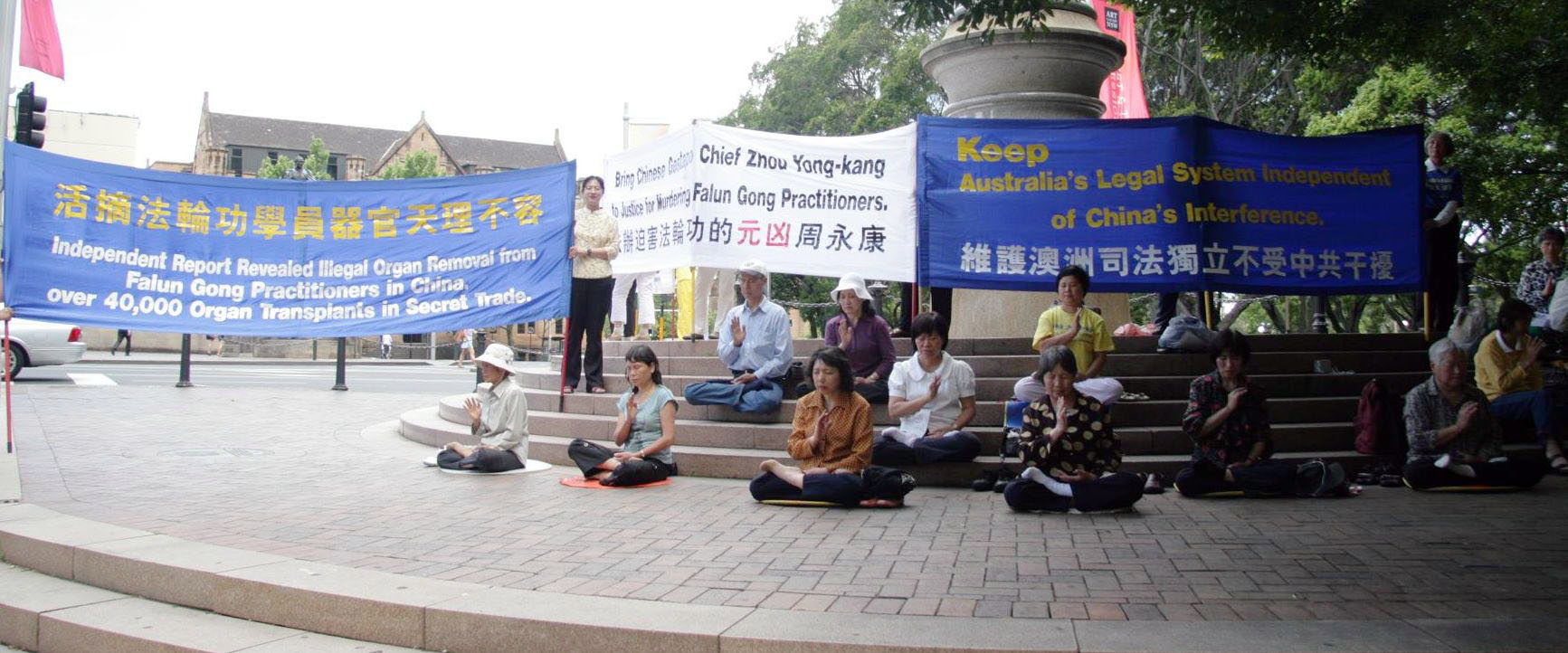![]() 法轮功学员在澳洲纽省高等法院前声援控告迫害元凶周永康 |