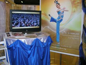 为了推广洪扬正统中华文化的神韵晚会,学员们在展位内准备了另一个独立的展示空间,播放推广录像带、并且分送简介。有几位民众告诉学员,他们在今年看了神韵演出,很喜欢,还表示明年会再去看。一位女士告诉学员,今年神韵晚会的票是两个女儿送给她的生日礼物,明年她一定会再去看一次,她说这是美好的生日礼物。当她谈到神韵晚会时,眼光散发着光芒。