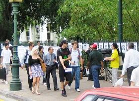 法轮功学员手举抗议横幅及海报,谴责周永康所犯下的反人类罪行。昆士兰法轮大法协会代表艾咪表示,澳洲人民有权知道,周永康对数以万计无辜的法轮功学员所犯下的种种罪行,倘若澳洲政府真的利用纳税人的钱来款待这样的罪犯,那将是件很可悲的事情。她希望澳洲民众及媒体共同向政府呼吁取消周永康的签证,拒绝让他踏入澳洲国土。