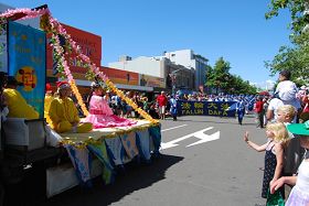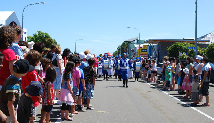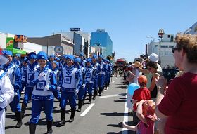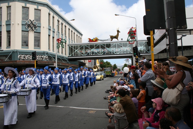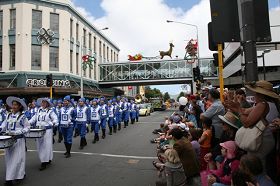 【明慧网二零零八年十二月十一日】每年圣诞节期间,新西兰各个城市和地区都要举行不同规模的圣诞游行。法轮功学员的天国乐团、腰鼓队、花车和仙女队,在这些游行中受到当地民众的欢迎。