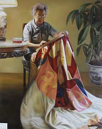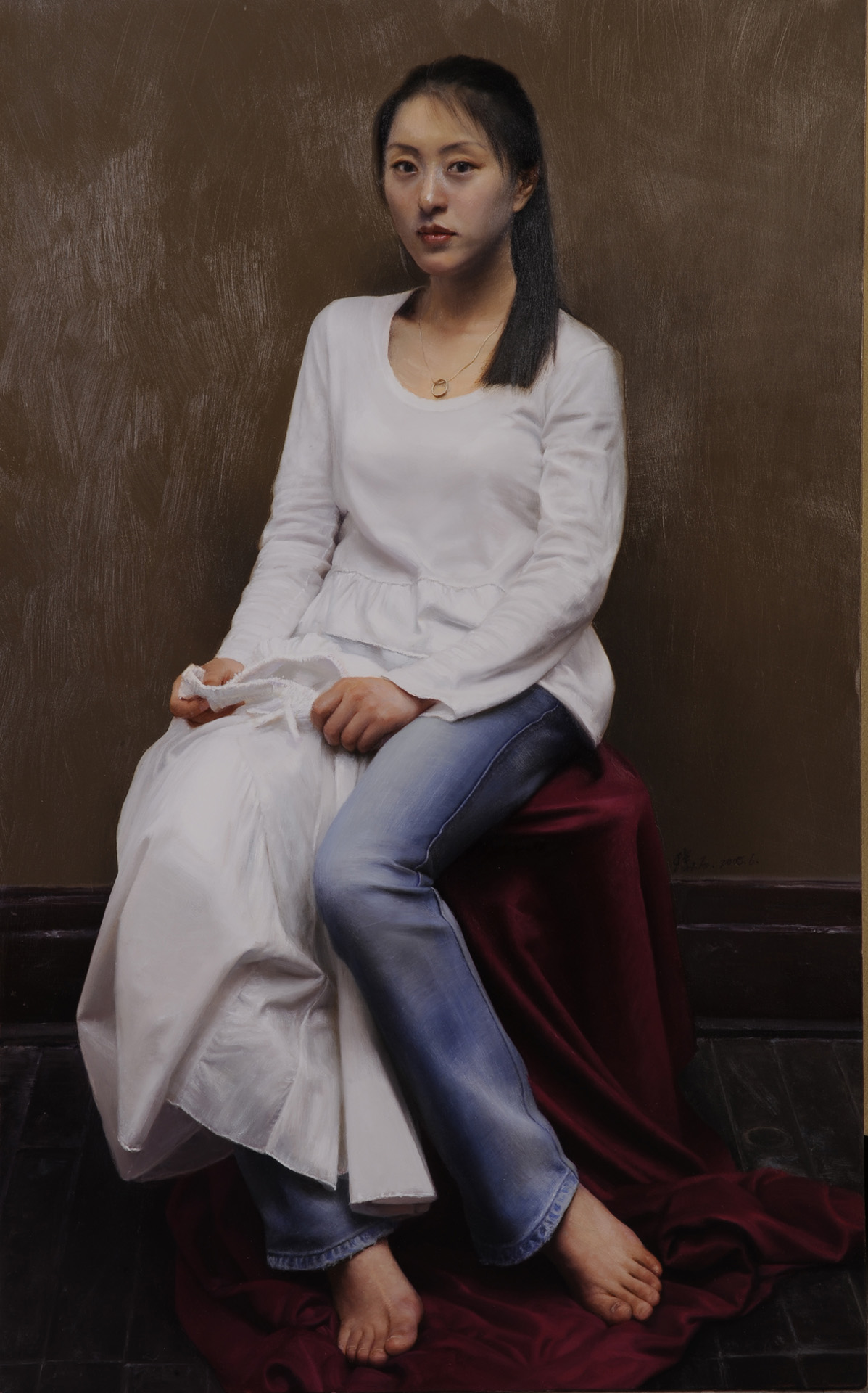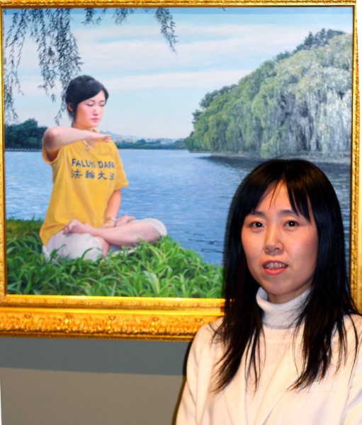 ![]() “全世界华人人物写实油画大赛”优秀奖获得者王晶与她的获奖作品《回归》。 |