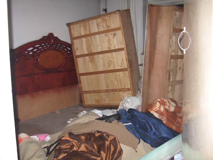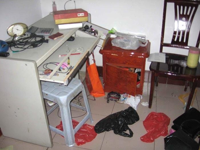 在没有任何合法手续、没有家属在场的情况下,路北国保人员非法抄家,搞得满屋狼藉、连床都被掀翻,抢走家中所有贵重物品,抢走何家大女儿何丹借来的生意款六十多万元(有证人证言可以说明款项的来源)、抢走何丹用于进货的面包车一辆,同时也将二女婿孙锋利停在厂内的轿车一辆抢走。