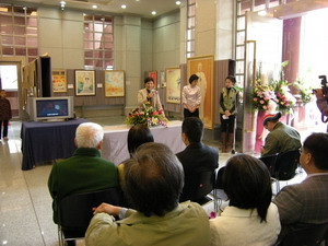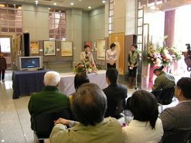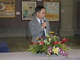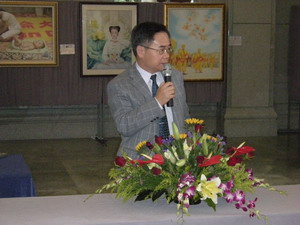 ![]() 谷保家商校长郑学忠莅临「真善忍国际美展」致词 |