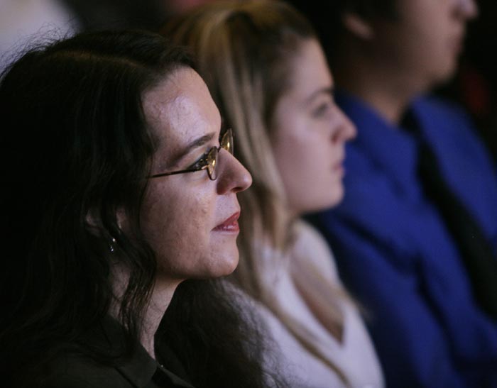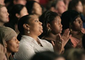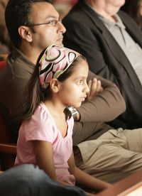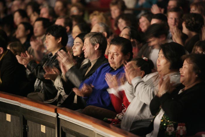 ![]() 观众聚精会神的观赏神韵国际艺术团在亚特兰大的首场演出 |