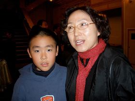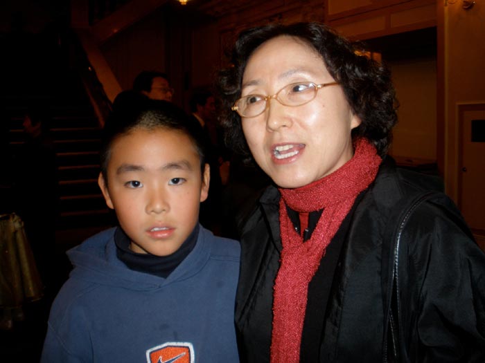 ![]() 华人艺术家郭女士和儿子一起观赏神韵演出,郭女士表示明天还要来看 |