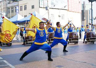 ![]() 五股乡真善忍美展旗鼓队表演 |