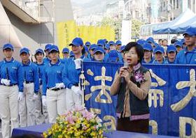 ![]() 立委林淑芬女士为五股乡真善忍美展致词 |