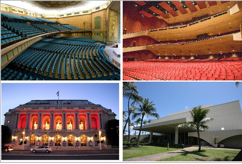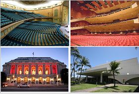 ![]() 从十二月廿六日开始,神韵艺术团将在美国西部的圣地亚哥、洛杉矶、旧金山、西雅图、波特兰、丹佛、凤凰城和檀香山八座城市上演三十五场晚会,图为即将上演神韵晚会的洛杉矶、圣地亚哥、旧金山和檀香山的剧院。 |