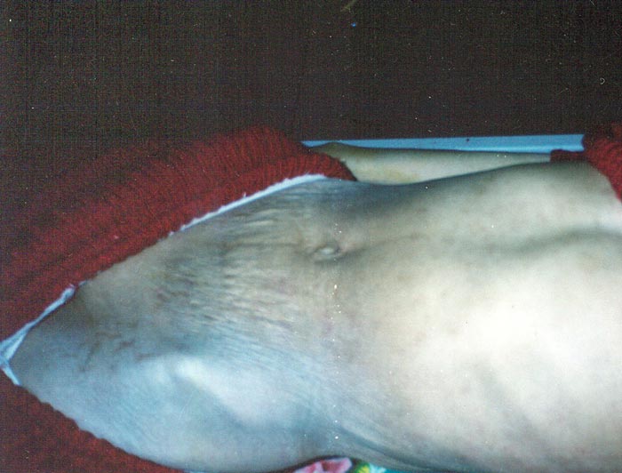 当家人打开冷藏冰柜,看见原本结实健壮的海玲,如今竟成了皮包骨的无言人,心情极度的悲伤,如五雷轰顶,泪如泉涌。她们看到眼前的海玲手腕上有明显的手铐勒痕,而且是陈伤……