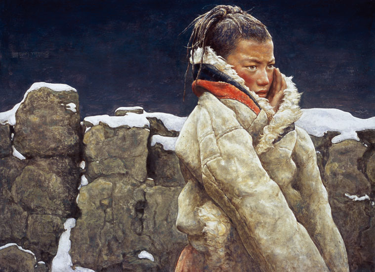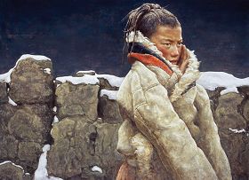 ![]() 油画家范一鸣的作品《雪花飘过》(局部),在美国新!唐!人:电视台举办的首届「全世界华人人物写实油画大赛」中获银奖 |