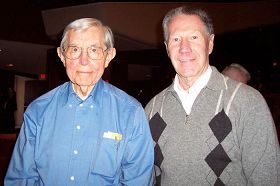 ![]() 前芭蕾舞演员格兰翰姆(Graham Rhodes)(右)和挚友奥纳德(Leonard Chase)都被神韵演出所感动。 |