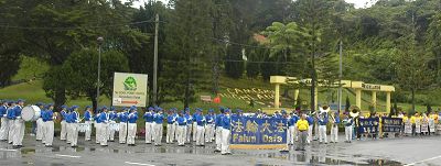 活动于早上九时开始。天国乐团在交通警察和自愿警卫的开路下从坐落在Brinchang市的金马伦高原总警察局出发游行。五十多位乐队成员演奏着《法轮大法好》拉开游行序幕。紧随着天国乐团的还有法轮功游行队伍。