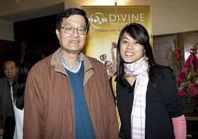全侨民主同盟洛杉矶支盟理事长陈国昌带着女儿来观看了演出。陈国昌表示,神韵艺术团用艺术的形式来弘扬中华文化值得称赞。