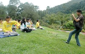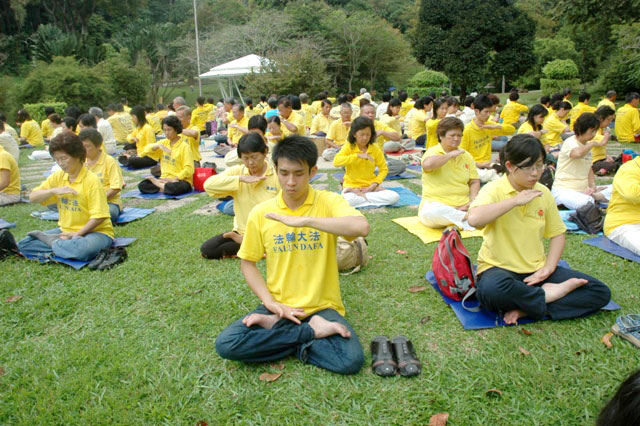 约两百位法轮功学员在当天下午四时许来到植物公园,并于公园正中央的小山坡上集体炼功。当天该公园在进行盛大的花卉展销节,法轮功祥和的五套功法不但吸引了在场的许多当地各族市民,同时也吸引了许多来自海外的游客。法轮功学员集体炼功点成为游客争相拍照的背景,有如法轮功在中国洪传时期的情景。