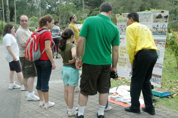 当地居民陈先生是一名壳牌汽油零售商,在植物公园散步时他首次遇到法轮功。在接受采访时,他表示自己对法轮功非常感兴趣,并认为“真、善、忍”的教导对于个人的未来以及下一代都是十分好的。他建议参与的学员应该与大家分享这个功法。