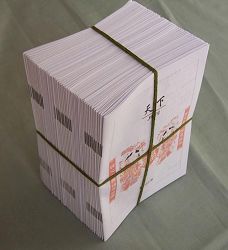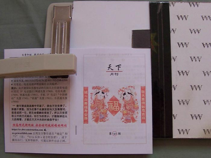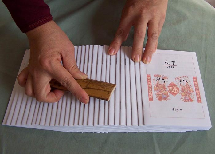 装订《·九·评*》书时,书钉不回弯,总有一边订不透,还以为是书钉质量不好,细思量,为何另一边能订透,于是找来防止皮肤干裂的凡士林油或唇膏,用其将钉书器的书钉打弯回折的部份涂上凡士林油,过一会儿后再订,基本就好使了,原来是书钉落底回折的时候,摩擦力太大,书钉不能回折,钉书器的该部件用久了老化或生锈。遇到此麻烦的同修不妨试试。