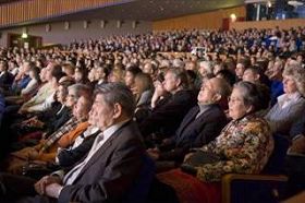 ![]() 二月十九日,神韵巡回艺术团在荷兰海牙登场,受到观众欢迎。 |