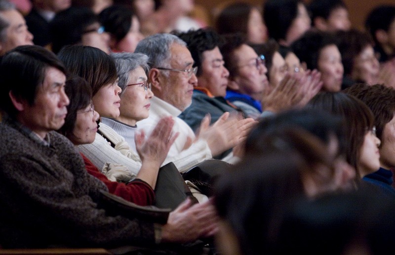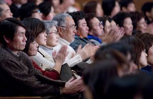 ![]() 神韵亚洲首站日本演出圆满落幕,全体观众起立长时间鼓掌、挥手、欢呼,向神韵纽约艺术团演员致意。 |