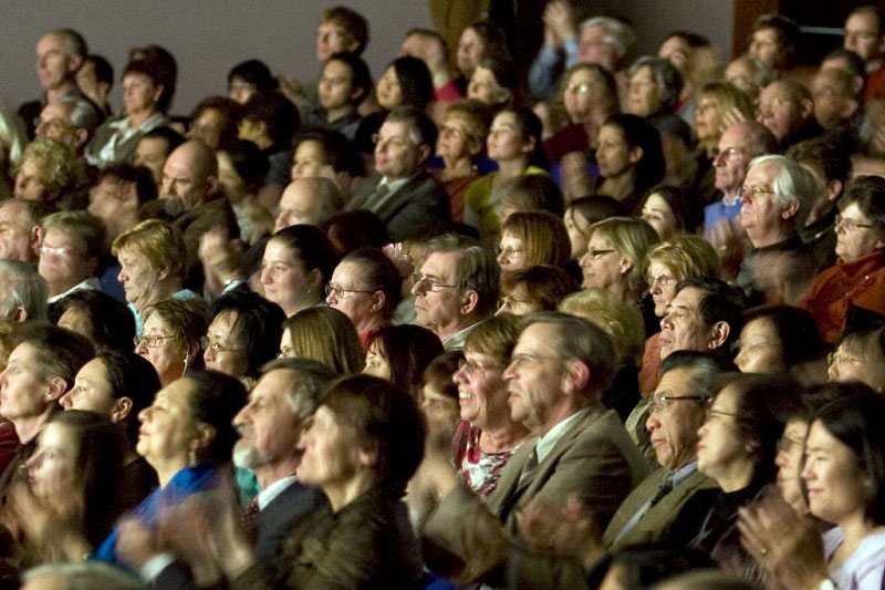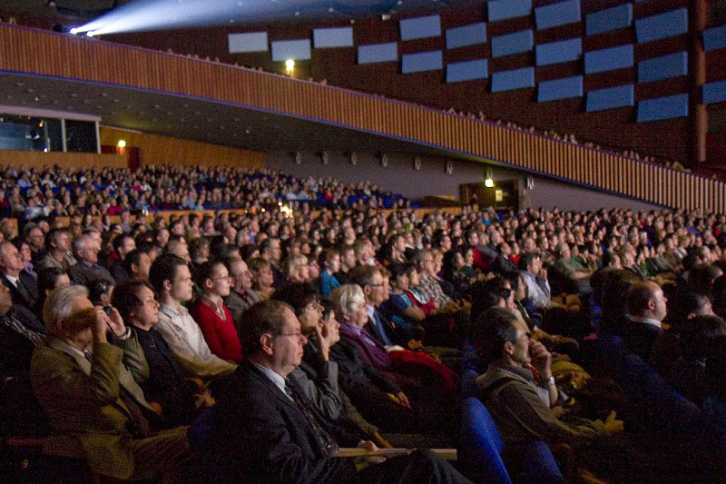 ![]() 在荷兰海牙世界论坛剧院,专注观看晚会的观众。 |