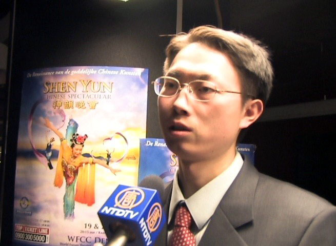 旅德华人学者、现任“欧华导报”总编辑钱跃君博士观看了神韵巡回艺术团在法兰克福的演出。他说,中使馆一贯是这种做法,即使使馆的工作人员未必想这么做。众所周知,中共的系统全部是这么做的,从中央到地方,贯穿下来,同样一条线延伸至海外。但是请中使馆人员不要忘记,这是欧洲,并非中共的天下,海外有人权的保护,你这么做就是非法,同时也是犯罪。